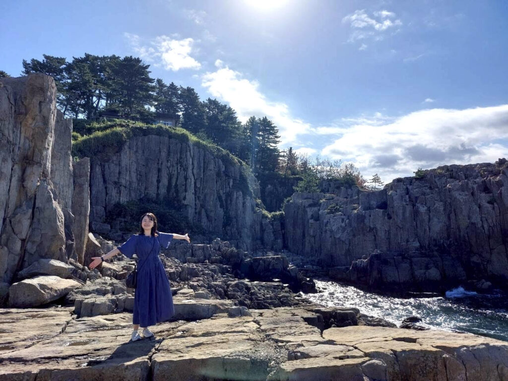 ▲現在(日本国内の旅も満喫中 ※写真は福井の東尋坊にて)